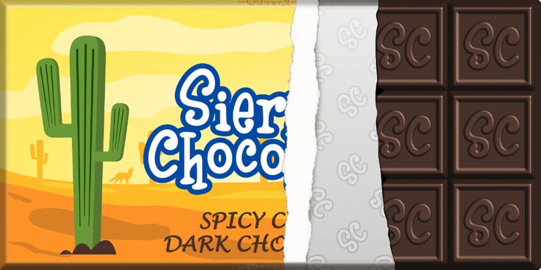 Sierra Chocolada is a Mexican-inspired hot and spicy chocolate that offers two unique flavors, each carefully crafted to satisfy everyone's taste buds. The packaging design features an eye-catching illustration of a desert landscape, reflecting the rich heritage of Mexico. The artwork is kept in a colourful comic book style that keeps things fun while still showing respect for its heritage.